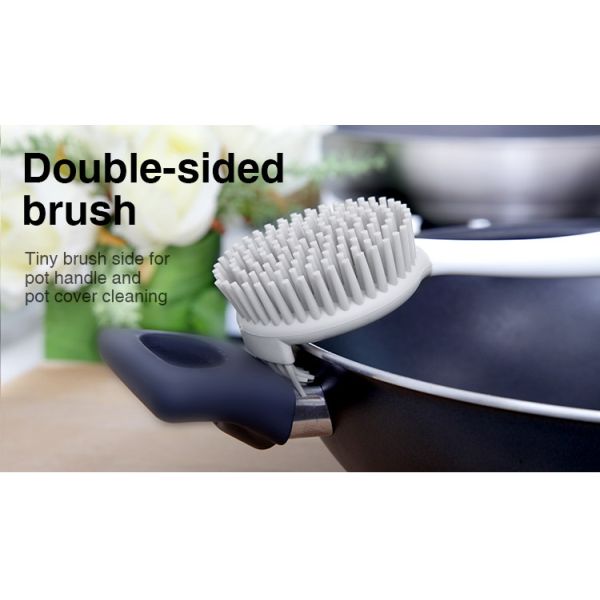 Double Side Longe Handle Dish House Keeping Brush Set Grey Cleaning Brush With Plastic Hand TPR Head